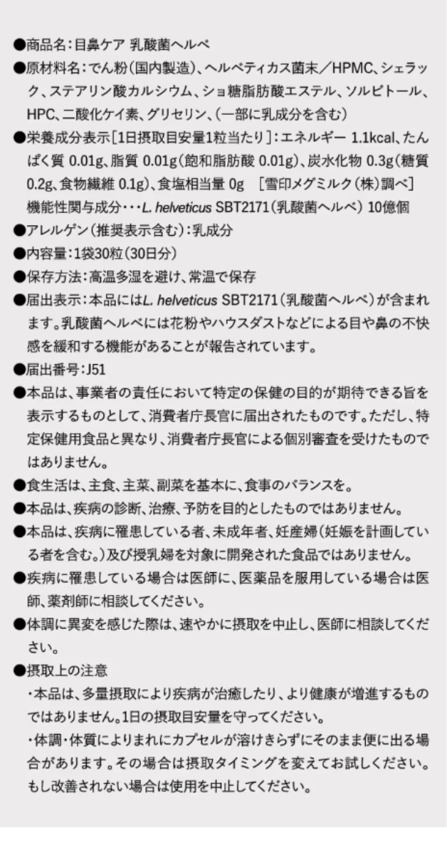 「目鼻ケア 乳酸菌ヘルべ」は