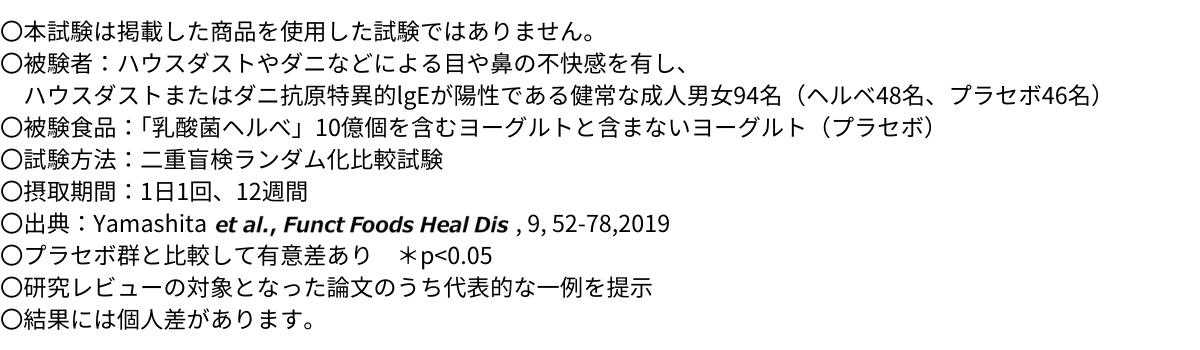 実際に実施された臨床試験でも、花粉やハウスダストなどによる鼻の不快感に加えて、目の不快感も緩和する働きがあると報告され注目の的に。